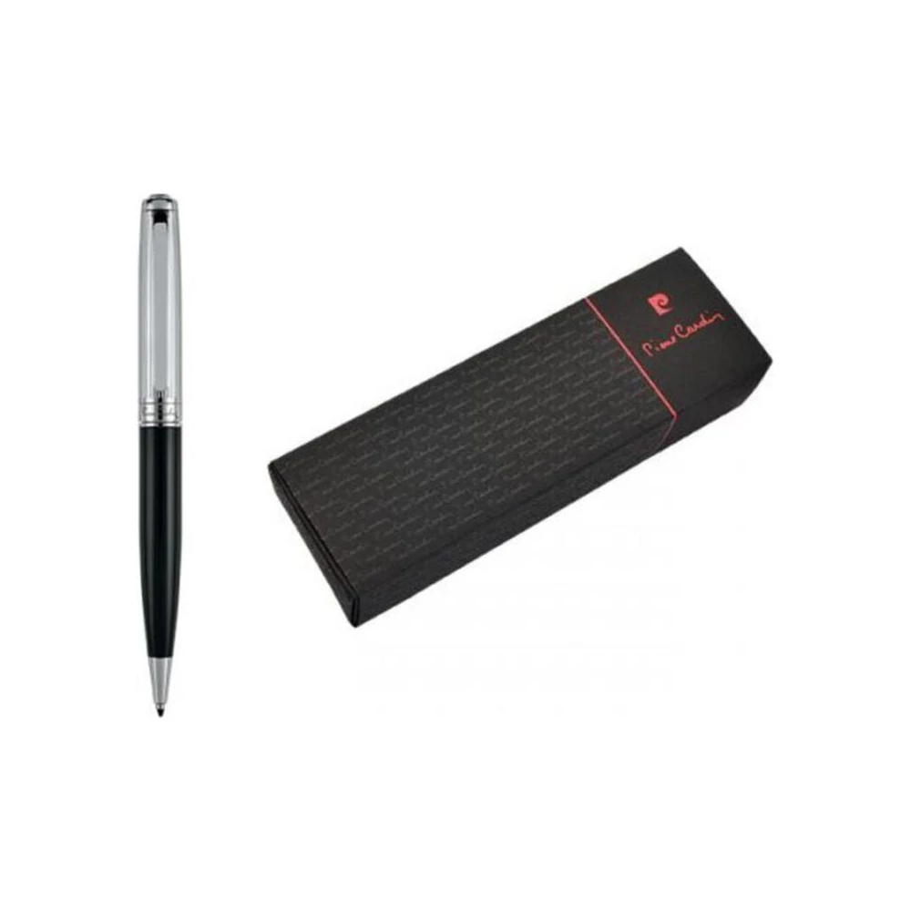 Pierre Cardin fém golyóstoll. A toll alsó része fekete, míg a felső része ezüst színnel és finom gravírozással díszített. A golyóstoll forgócsavaros, kék és fekete színű minőségi tollbetétel(0,5mm),díszdobozban,hitelességi bizonyítvánnyal szállítjuk.