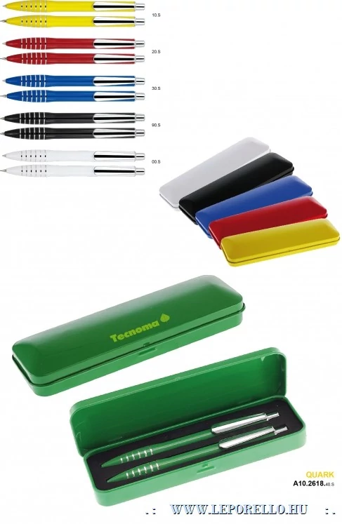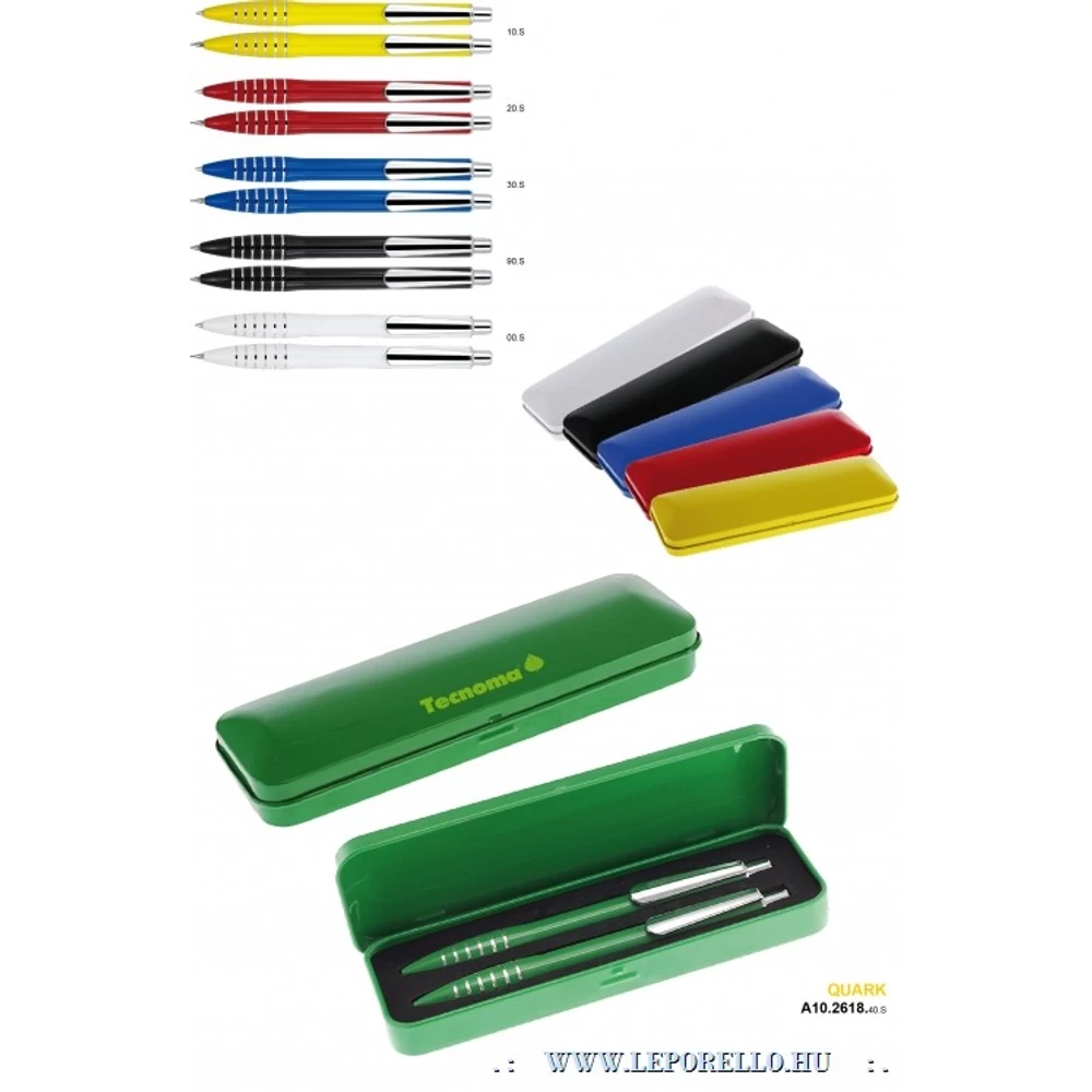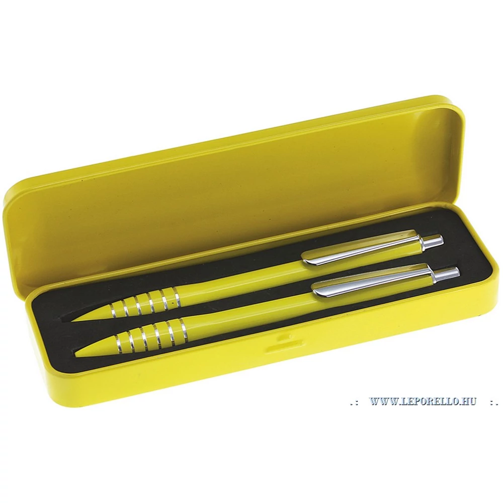 színek: 40S-zöld ,10S-sárga, 20S-piros, 30S-kék, 90S-fekete, 00S-fehér - Alumínium golyóstoll+ceruza készlet színes fém dobozban