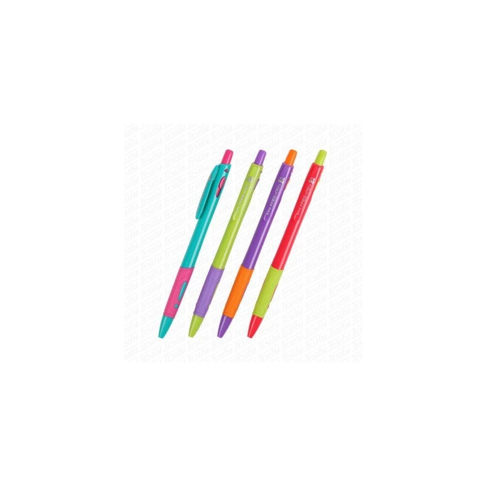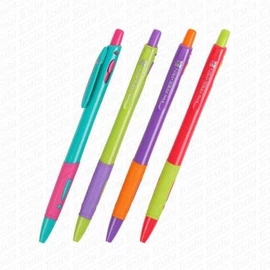 Tenfon nyomógombos golyóstoll, 4 különböző vegyes élénk színben, gumírozott fogórésszel, 0.5 mm-es írásvastagsággal.