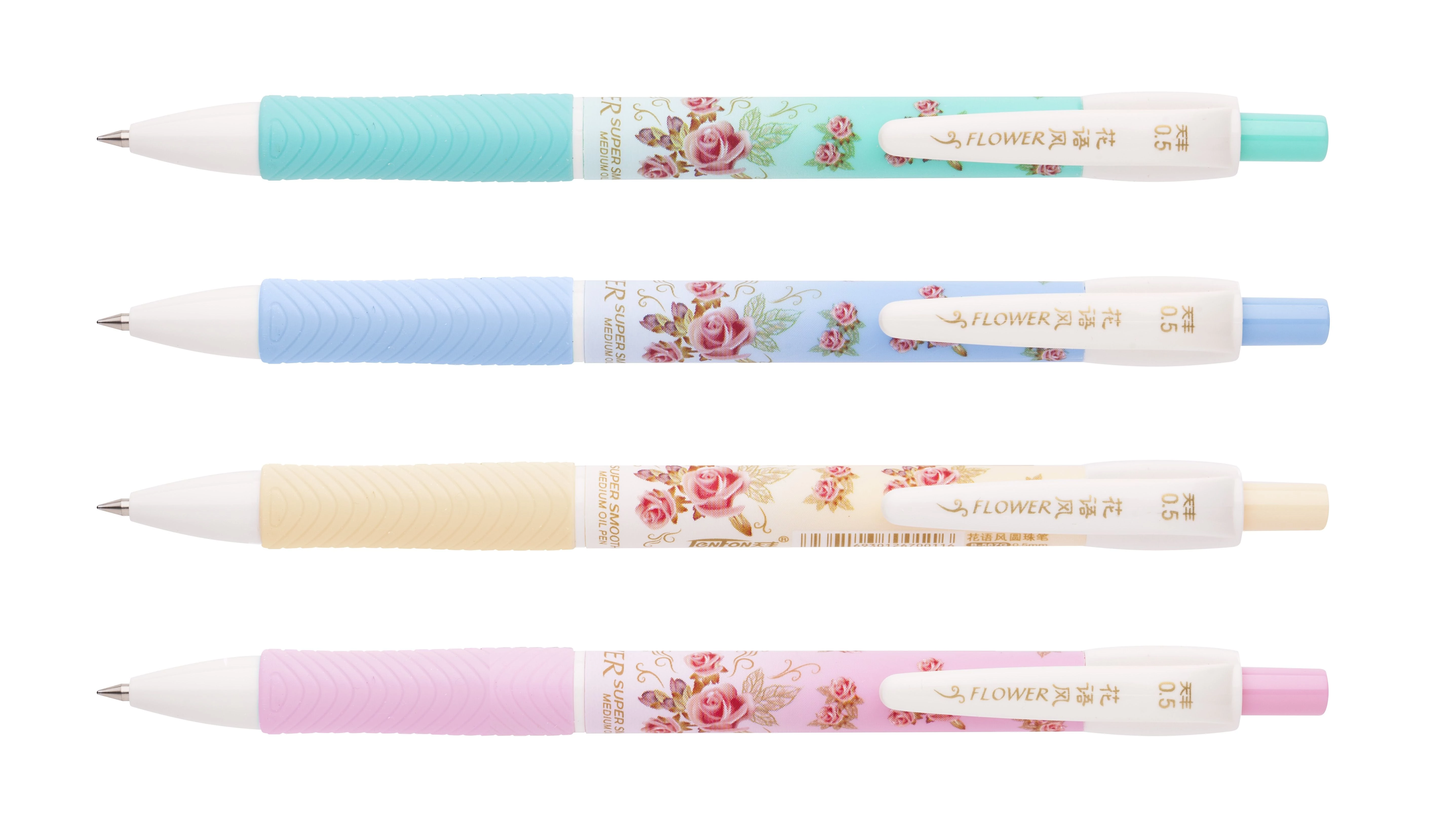 - Nyomógombos golyóstoll. - Műanyag tolltest, kényelmes gumi fogórész. - 4 féle vidám, élénk színű, mintás tolltest.A szín a megjegyzésben a készlet erejéig választható. - Írásszín: kék. Golyó átmérő: 0,5 mm Vonalvastagság 0.3 mm - az ár 1db-re vonazkozik