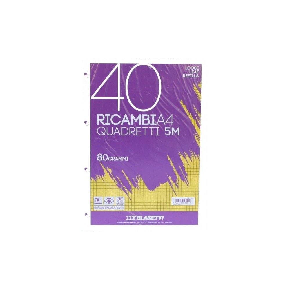 GYŰRŰSKÖNYV betét A4/40lap kockás Blasetti Ricambi fehér 1201