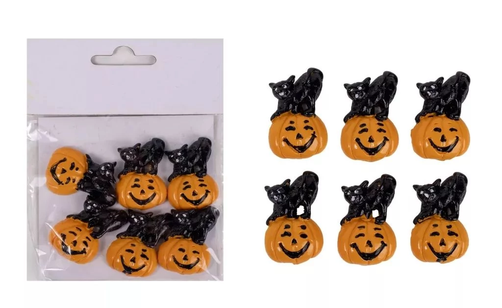 HALLOWEEN TÖK macskával, kerámia öntapadós 3,3cm