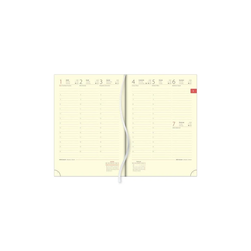 - Megnyerő stílusával előkelő helyet vívott ki magának és örök divatot teremtett. Selymes fényű, körbe varrott, igényes bőrhatású borítóanyaggal készül, puha kötéstáblával. 144 oldalas chamoisr tömbös, napi órás naptárbeosztású, jelzőszalaggal és sarokperforációval ellátott agenda.