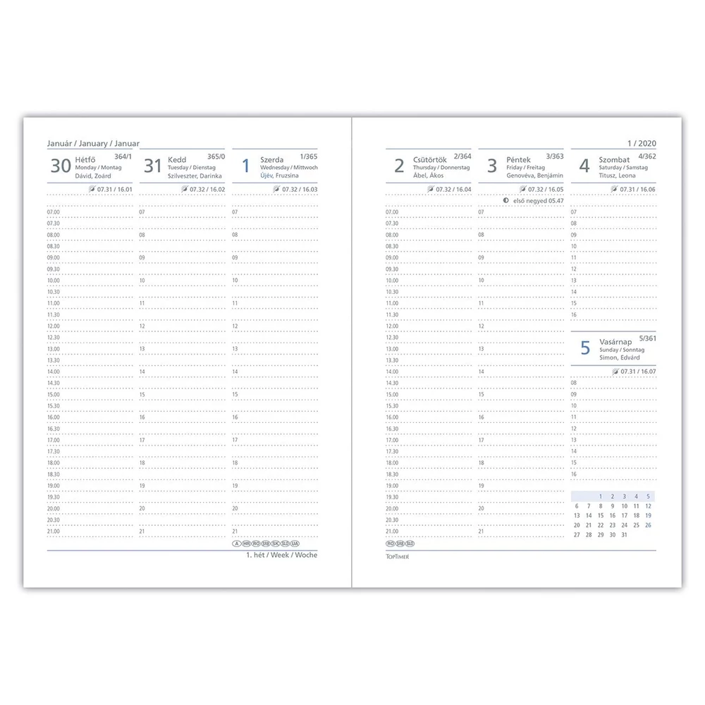 Színes, vidám grafikákkal díszített metál fóliával bevont fehér tömbös agenda. Terjedelem 144 oldal, heti órás naptárbeosztás, jelzőszalag, sarokperforáció.