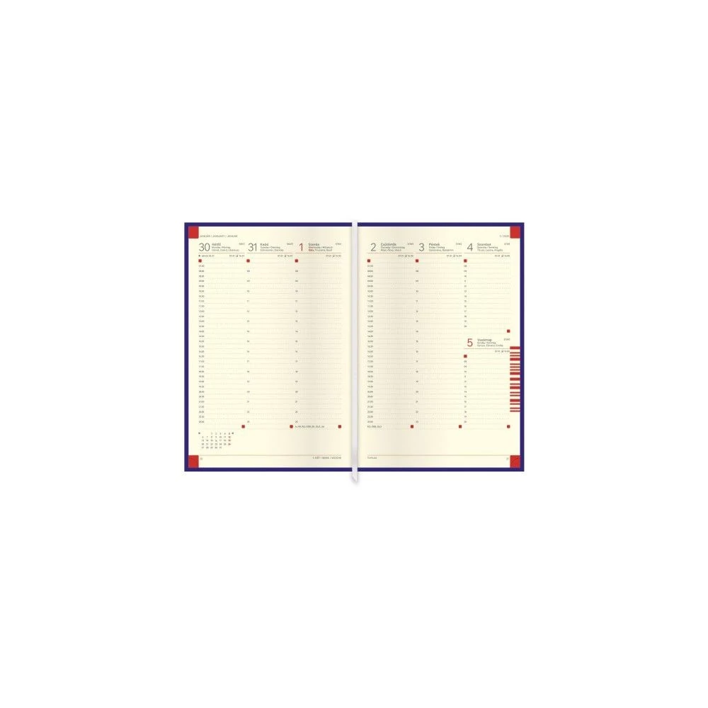- Kétféle matt, hőre színeződő műbőr bevonóval készült naptár, íves díszítéssel, elegáns évszámmal. 144 oldalas, chamois tömbös, heti , félórás naptárbeosztású agenda jelzőszalaggal és sarokperforációval.