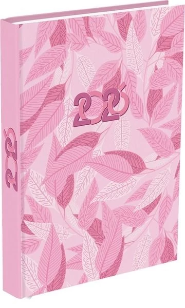HATÁRIDŐNAPLÓ 2026 A5 napi T-Calendar mintás Soft Touch+UV (rózsaszín levelek)