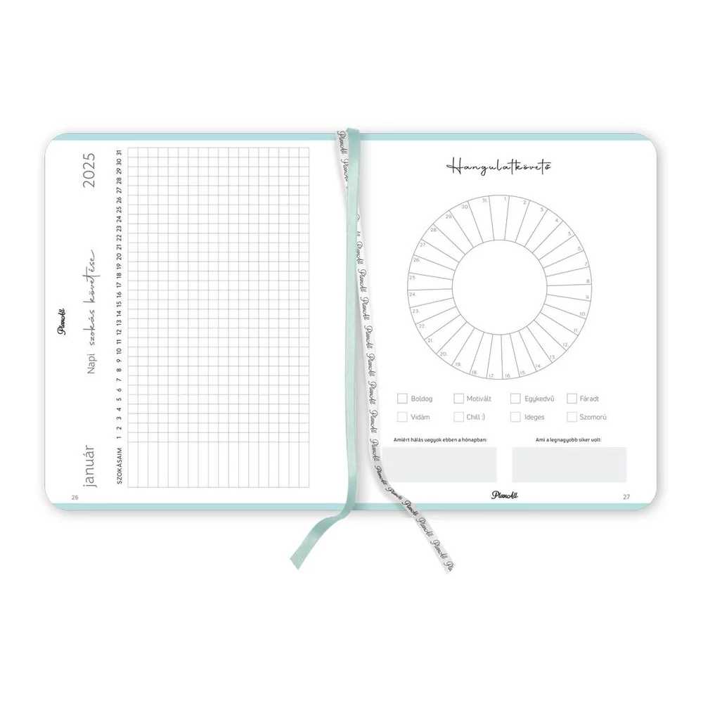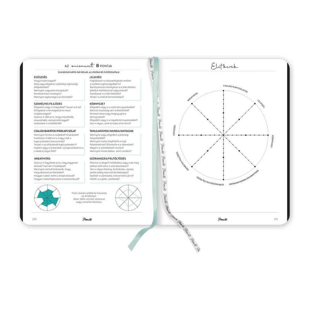 B5 méretű, könyvkötött, keményfedeles, gumi rögzítős heti tervezőnaptár. Igazi "Life Coach"! Havi, napi, éves célok, anyagi tudatosság, hangulattábla, havi szokáskövető táblázat, havi motiváció, elmetérkép, negyedéves és éves értékelők, személyes fókusz, 224 oldal, könyvkötött, Méret: 170x216 mm.