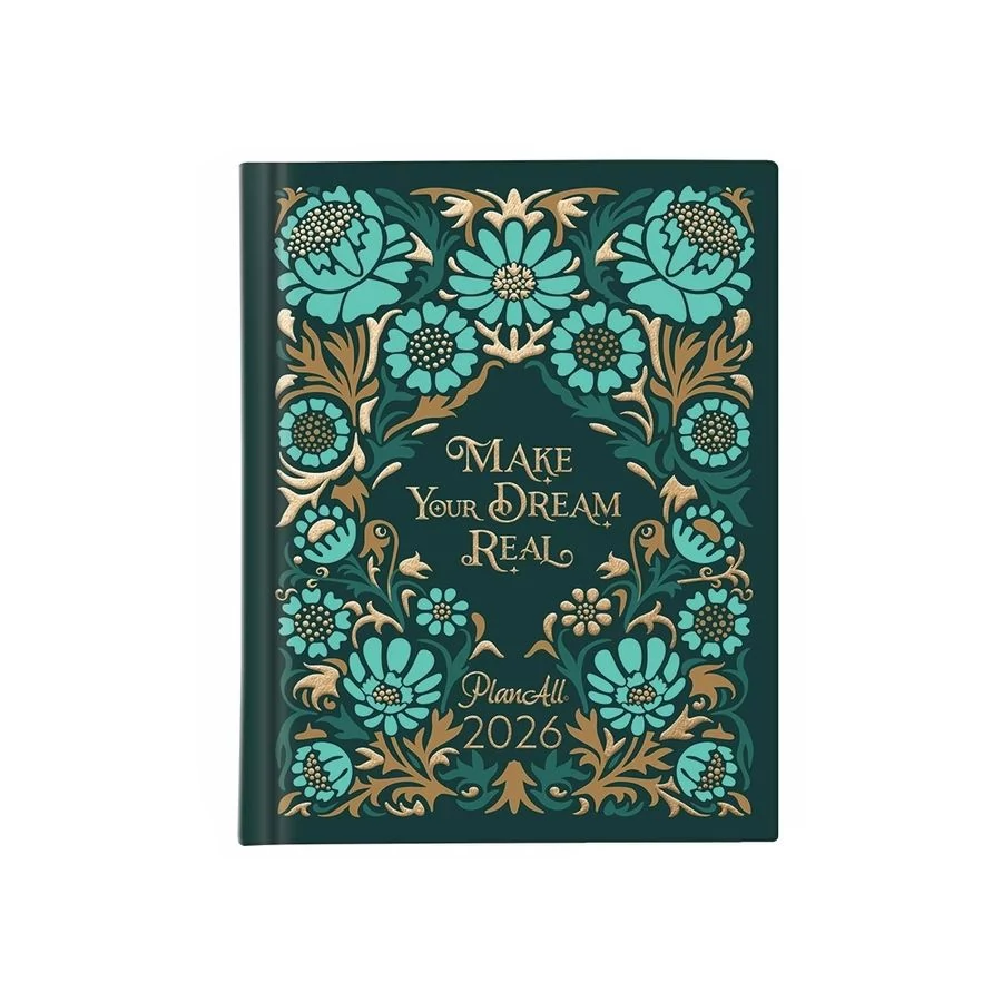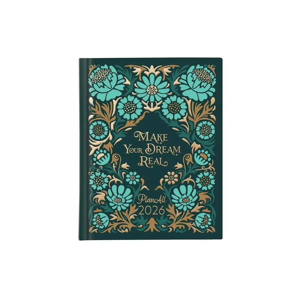 A6 méretű, keményfedeles, aranyozott, heti bontású zsebnaptár, Plann All System, heti tervező, motivációs idézetek, tennivaló lista, anyagi tudatosság. 192 oldal, irkafűzött, 107x134 mm.