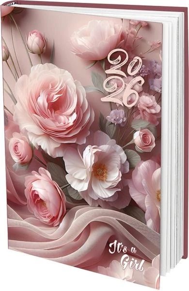 HATÁRIDŐNAPLÓ 2026 B6 heti T-Calendar It's a Girl (rózsák selyemmel)
