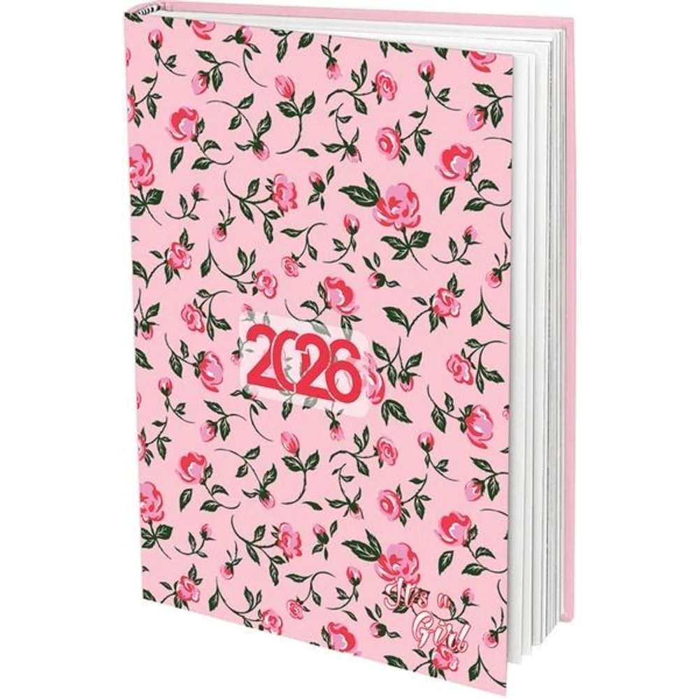 HATÁRIDŐNAPLÓ 2026 B6 heti T-Calendar It's a Girl (rózsaszín alapon virágok)