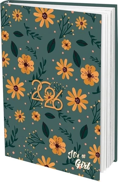 HATÁRIDŐNAPLÓ 2026 B6 heti T-Calendar It's a Girl (zöld alapon nari virágok)