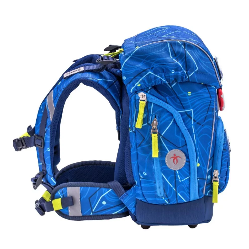 • Az állítható, S-alakú vállpántok tökéletes illeszkedést és kényelmet biztosítanak, valamint csökkentik a gyerekek vállára nehezedő terhelést