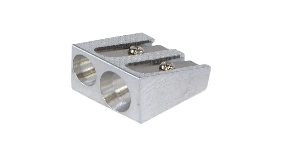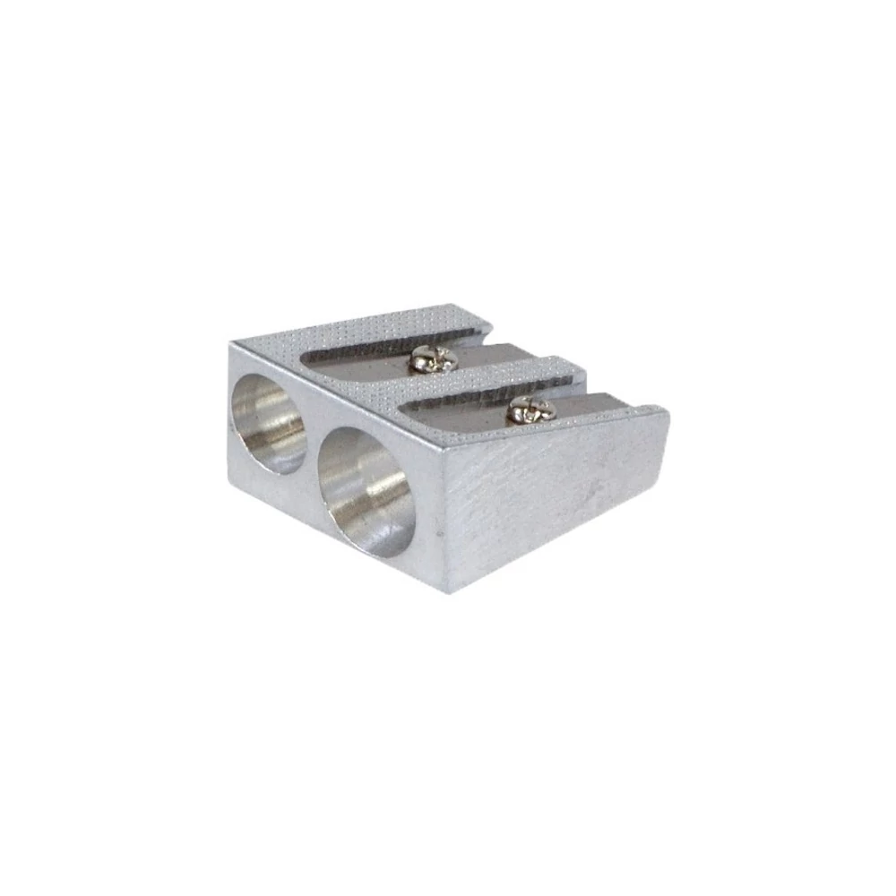 - Alumínium ötvözetű fém hegyezők hagyományos formában. Egylyukú hegyező a vékony ceruzákhoz, a kétlyukú hegyező vékony és vastag ceruzák hegyezésére alkalmas.