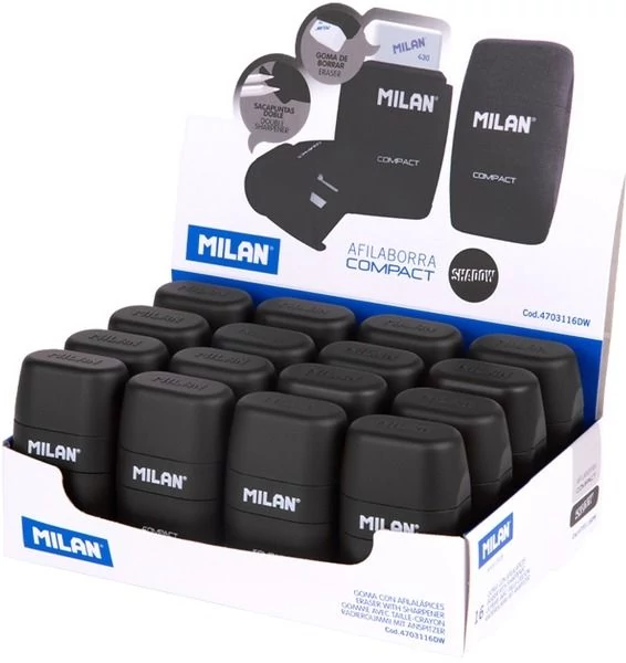 MILAN 2 lyukú, kézi tartályos hegyező radírral.