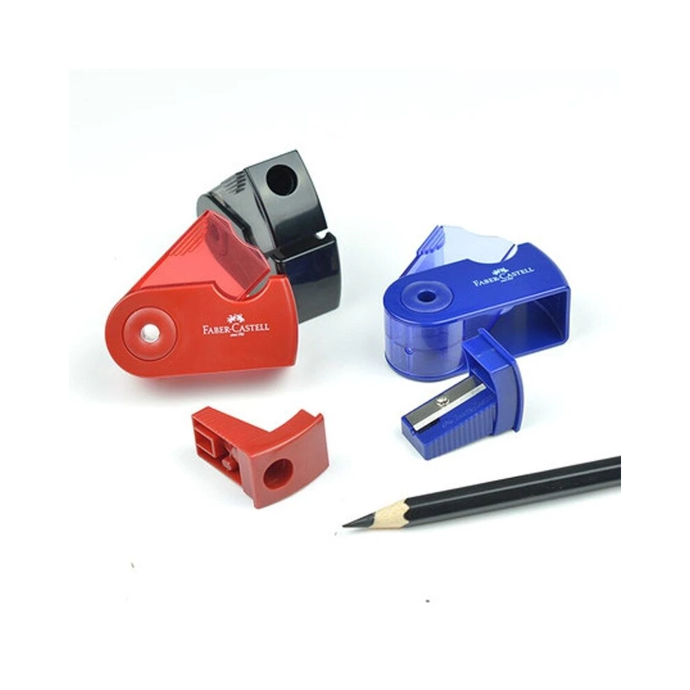 - Különleges kézi, tartályos FABER CASTELL hegyező, mely egy mozdulattal előhúzható a műanyag burkolatból, ami hegyezőt rejt.
