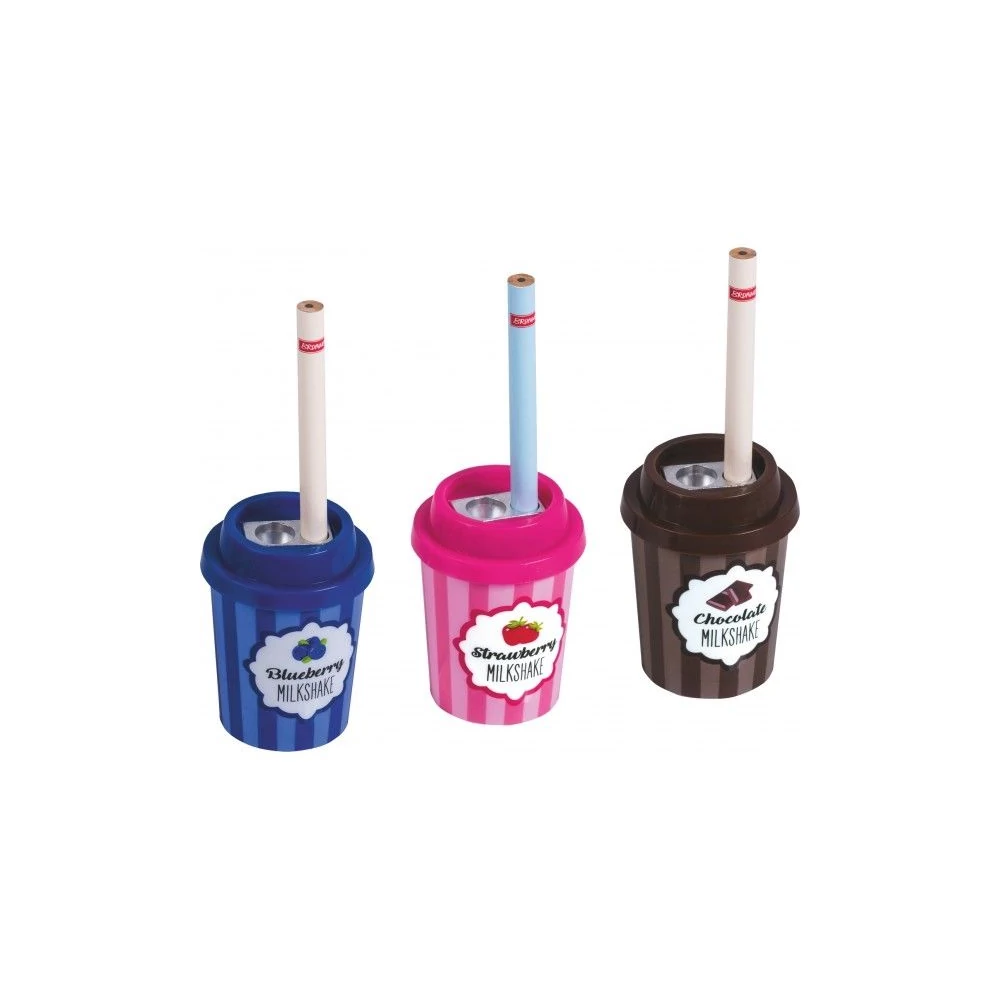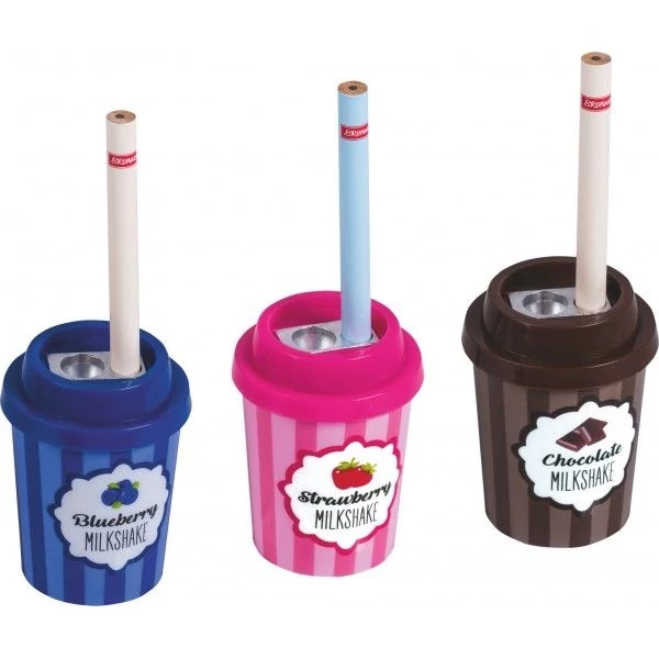 Milkshake formájú 2 lyukú hegyező 3 féle mintával. Mérete 6,5 x 4,5 cm. Minta a készlet erejéig választható.