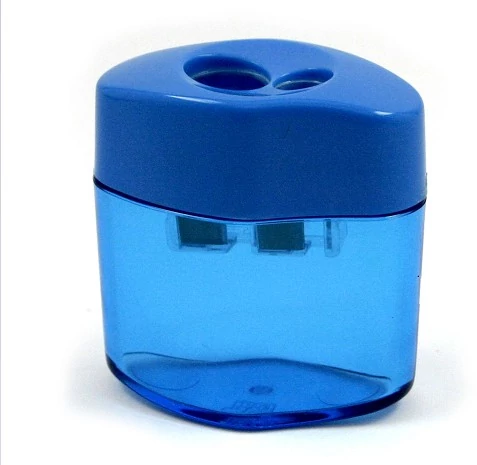 - Műanyag, tartályos, fém hegyezőkéses, 2 lyukú hegyező, vastag és vékony grafit- illetve színes ceruza hegyezéséhez.