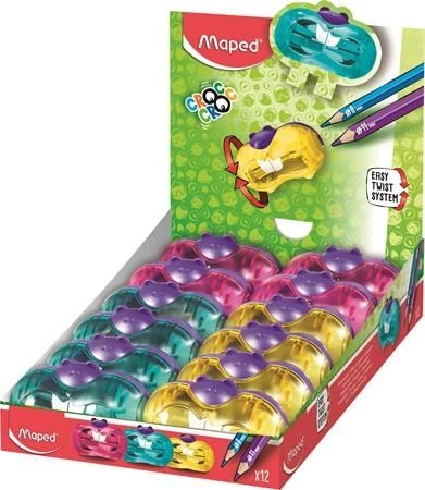 -kétlyukú: 8 és 11 mm átmérőjű ceruzához egyaránt alkalmas -3 különböző színben, a szín nem választható -aranyos dizájn -racsnis rendszer: mindkét irányba forgatható benne a ceruza, így bárki számára egyszerű használatot tesz lehetővé -vegyes színek, a szín nem választható -100%-ban újrahasznosítható karton csomagolás