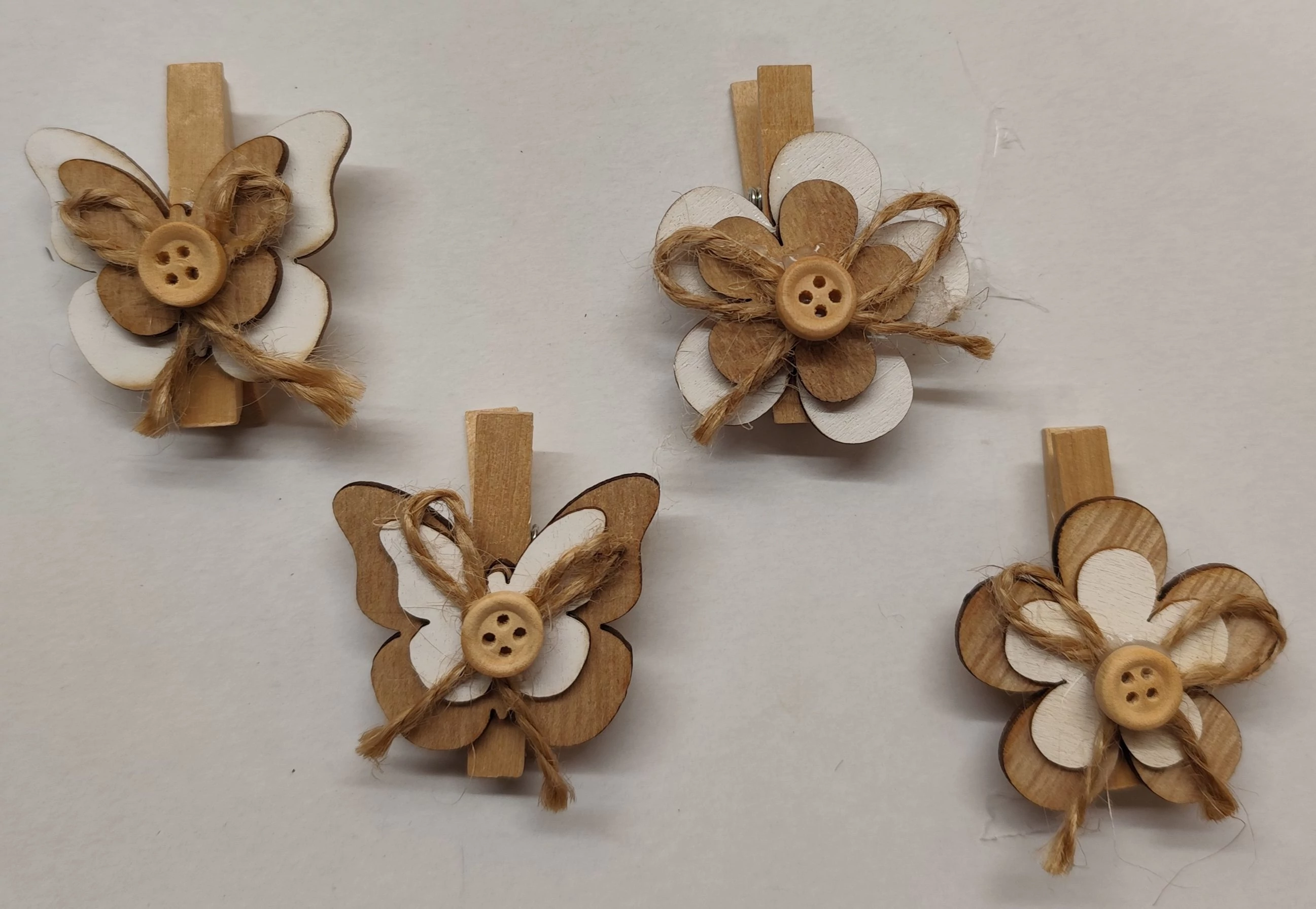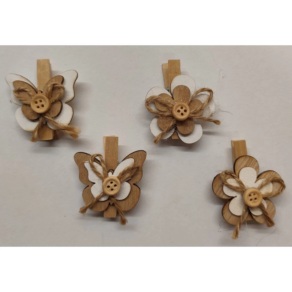 CSIPESZ fa natur/fehér virág/lepke gombbal 5cm