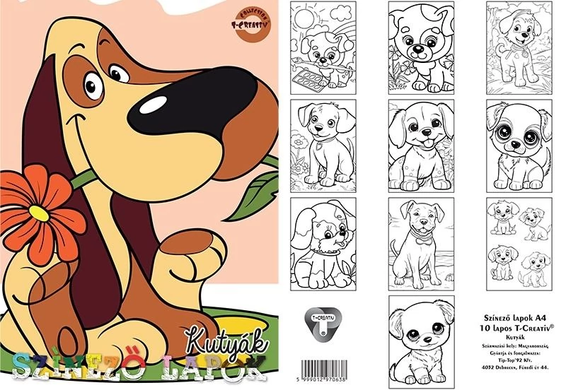 SZÍNEZŐ LAPOK A4 T-Creatív 10lap/cs. vegyes minta (Kutyák, M23002TKU)