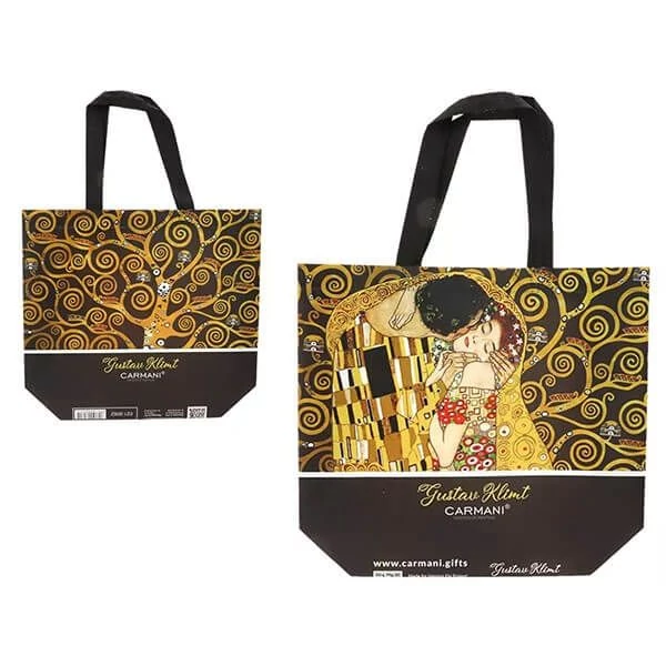Gustav Klimt festményeinek motívumával díszített válltáska#slszatyor. Egy különleges mintájú szatyor, mely dísztasakként is szolgálhat Klimt-es ajándékokhoz.