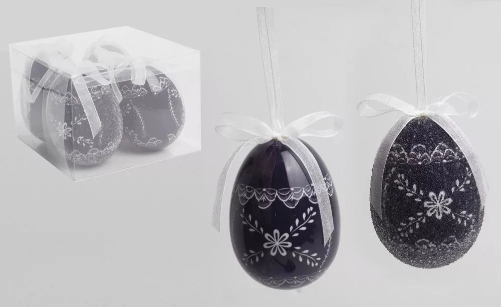 HÚSVÉTI TOJÁS fényes/matt fekete, kalász mintával 7,5cm