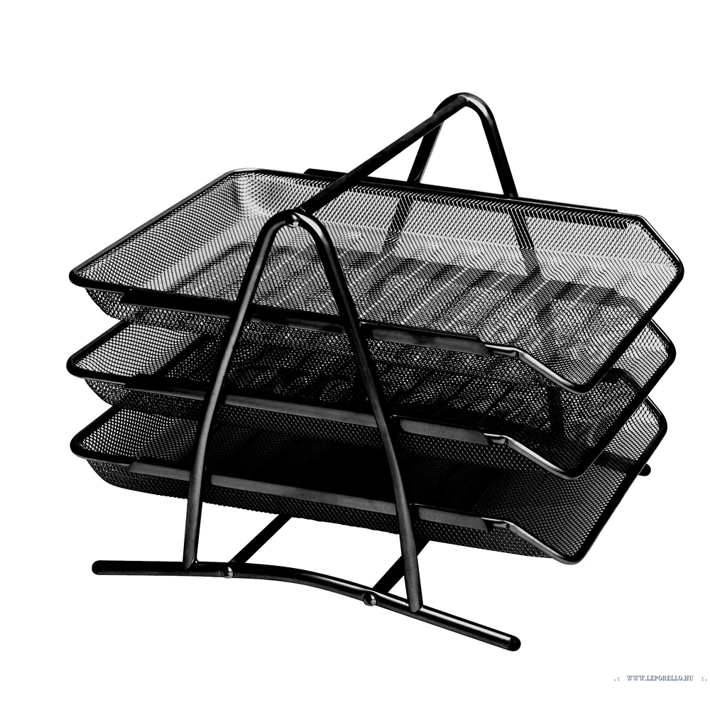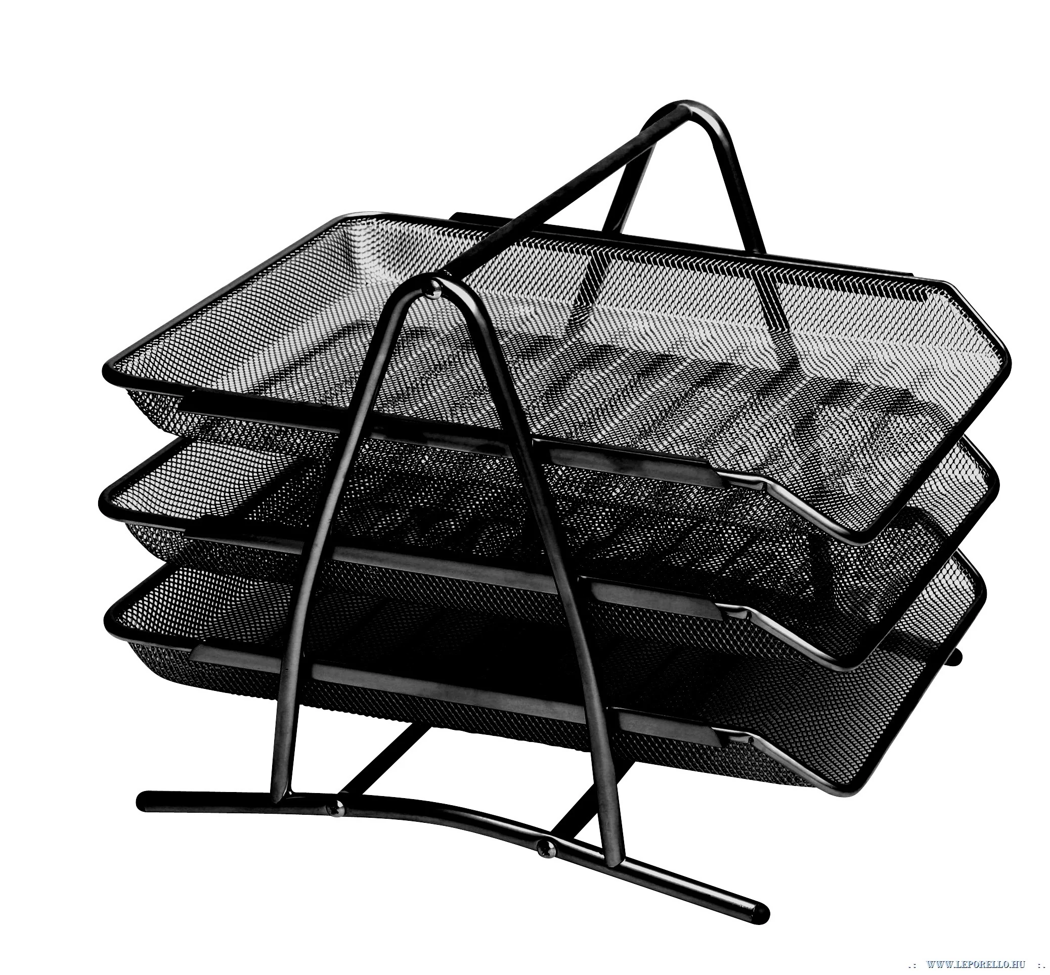 - Fémhálós kivitelű háromszintes irattartó tálca, A/4 -es méretű iratok tárolására. Színek: fekete, ezüst.