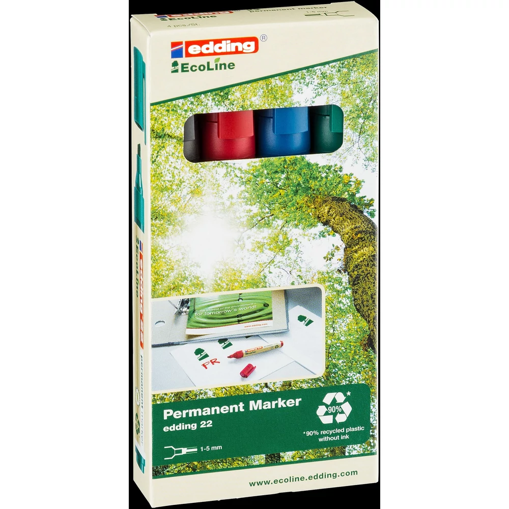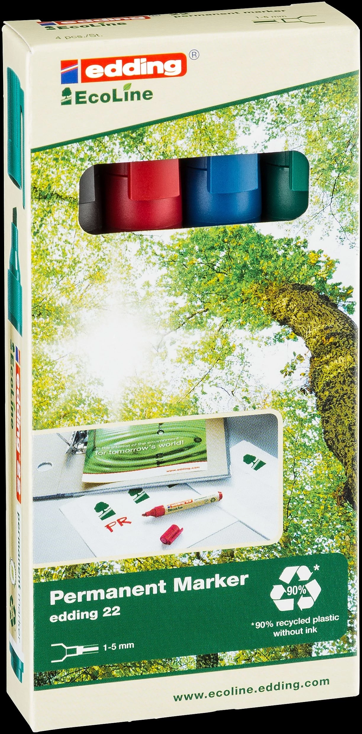 MARKER készlet EDDING Permanent 22/4 vágott hegyű EcoLine 4szín