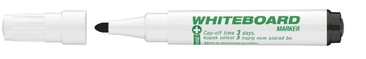 Antibakteriális whiteboard marker, fehér táblára való írásra, rajzolásra. A műanyag alkatrészek antibakteriális védelmet adó Biomaster ezüst-ionokat tartalmaznak (biocid hatóanyag: ezüst-foszfát üveg). Az ICO Antibakteriális termékei bizonyítottan baktériumölő tulajdonsággal rendelkeznek, a felszínen megtelepedett kórokozók 24 óra leforgása alatt, 99,9% hatékonysággal elpusztulnak. Az antibakteriális hatást az angliai Industrial Microbiological Services Ltd. bevizsgálta és igazolta. Regisztrációs szám: 3264423. "Cap-off" festékkel töltve, ezért néhány napig kupak nélkül sem szárad be. Az írás szárazon letörölhető. Megnövelt élettartam a nagyobb méretű testnek köszönhetően. Kerekített csúccsal. Vonalvastagság: 3 mm.