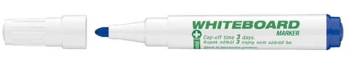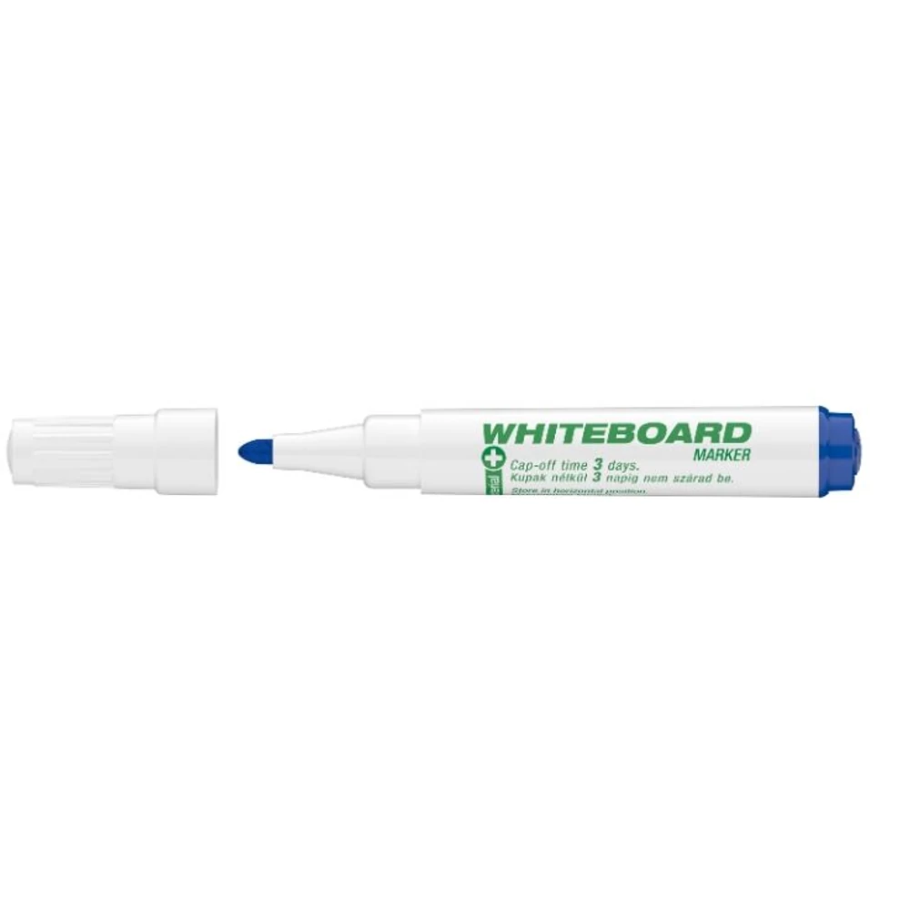 Antibakteriális whiteboard marker, fehér táblára való írásra, rajzolásra. A műanyag alkatrészek antibakteriális védelmet adó Biomaster ezüst-ionokat tartalmaznak (biocid hatóanyag: ezüst-foszfát üveg). Az ICO Antibakteriális termékei bizonyítottan baktériumölő tulajdonsággal rendelkeznek, a felszínen megtelepedett kórokozók 24 óra leforgása alatt, 99,9% hatékonysággal elpusztulnak. Az antibakteriális hatást az angliai Industrial Microbiological Services Ltd. bevizsgálta és igazolta. Regisztrációs szám: 3264423. "Cap-off" festékkel töltve, ezért néhány napig kupak nélkül sem szárad be. Az írás szárazon letörölhető. Megnövelt élettartam a nagyobb méretű testnek köszönhetően. Kerekített csúccsal. Vonalvastagság: 3 mm.