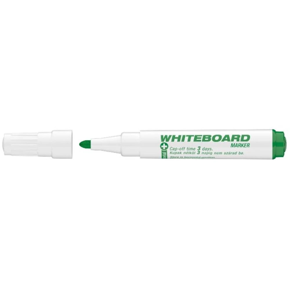 Antibakteriális whiteboard marker, fehér táblára való írásra, rajzolásra. A műanyag alkatrészek antibakteriális védelmet adó Biomaster ezüst-ionokat tartalmaznak (biocid hatóanyag: ezüst-foszfát üveg). Az ICO Antibakteriális termékei bizonyítottan baktériumölő tulajdonsággal rendelkeznek, a felszínen megtelepedett kórokozók 24 óra leforgása alatt, 99,9% hatékonysággal elpusztulnak. Az antibakteriális hatást az angliai Industrial Microbiological Services Ltd. bevizsgálta és igazolta. Regisztrációs szám: 3264423. "Cap-off" festékkel töltve, ezért néhány napig kupak nélkül sem szárad be. Az írás szárazon letörölhető. Megnövelt élettartam a nagyobb méretű testnek köszönhetően. Kerekített csúccsal. Vonalvastagság: 3 mm.