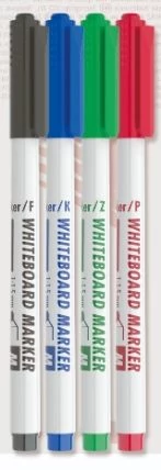 Fehértáblára való írásra, rajzolásra alkalmas marker. Az írás szárazon könnyen letörölhető. Kerekített csúcs. Vonalvastagság: 1-1,5 mm.