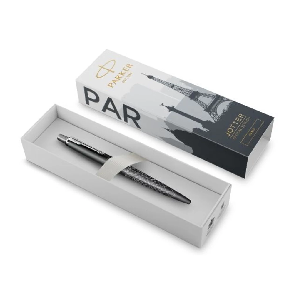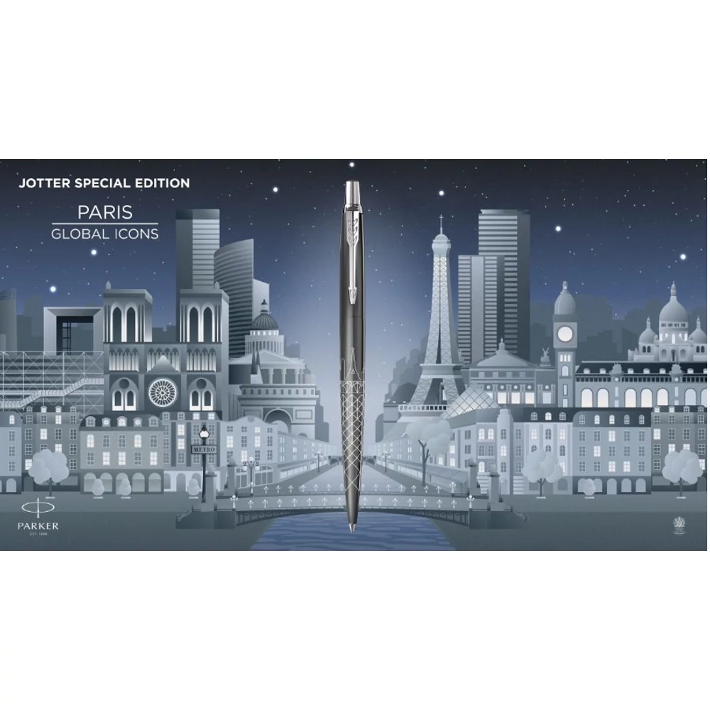 A Jotter Special Edition „Global Icons” kollekció, folytatva világkörüli turnéját híres városokon keresztül, most négy új, izgalmas várost hódít meg. Lélegzetelállító nevezetességek és varázslatos hangulat adta az ihletet a Jotter Special Edition Paris modellhez. A párizsi építészet elegáns szürke árnyalatai, a történelmi és modern emlékműveket díszítő finom minták – mind-mind hozzájárulnak a toll dizájnjához.