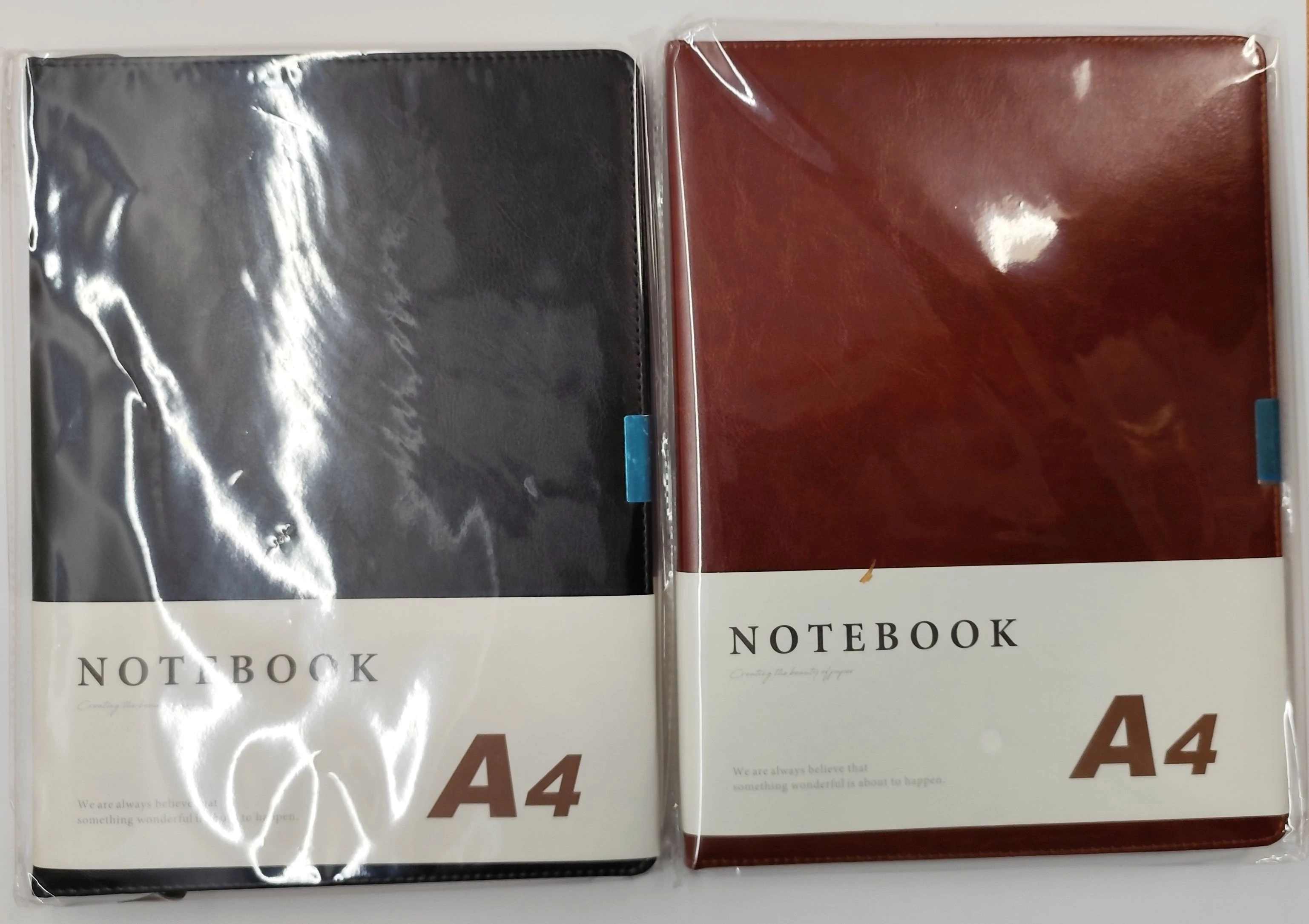 Vonalas notebook A4-es méretben, puha műbőr borítással fekte vagy barna színben.