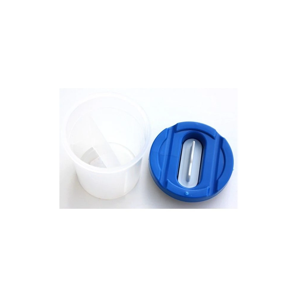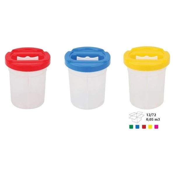 Műanyag fedeles két rekeszes ecsetmosó pohár.