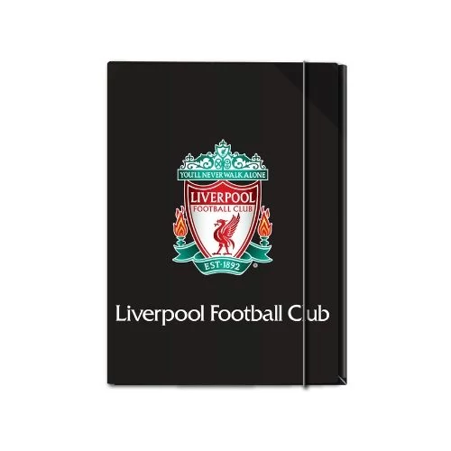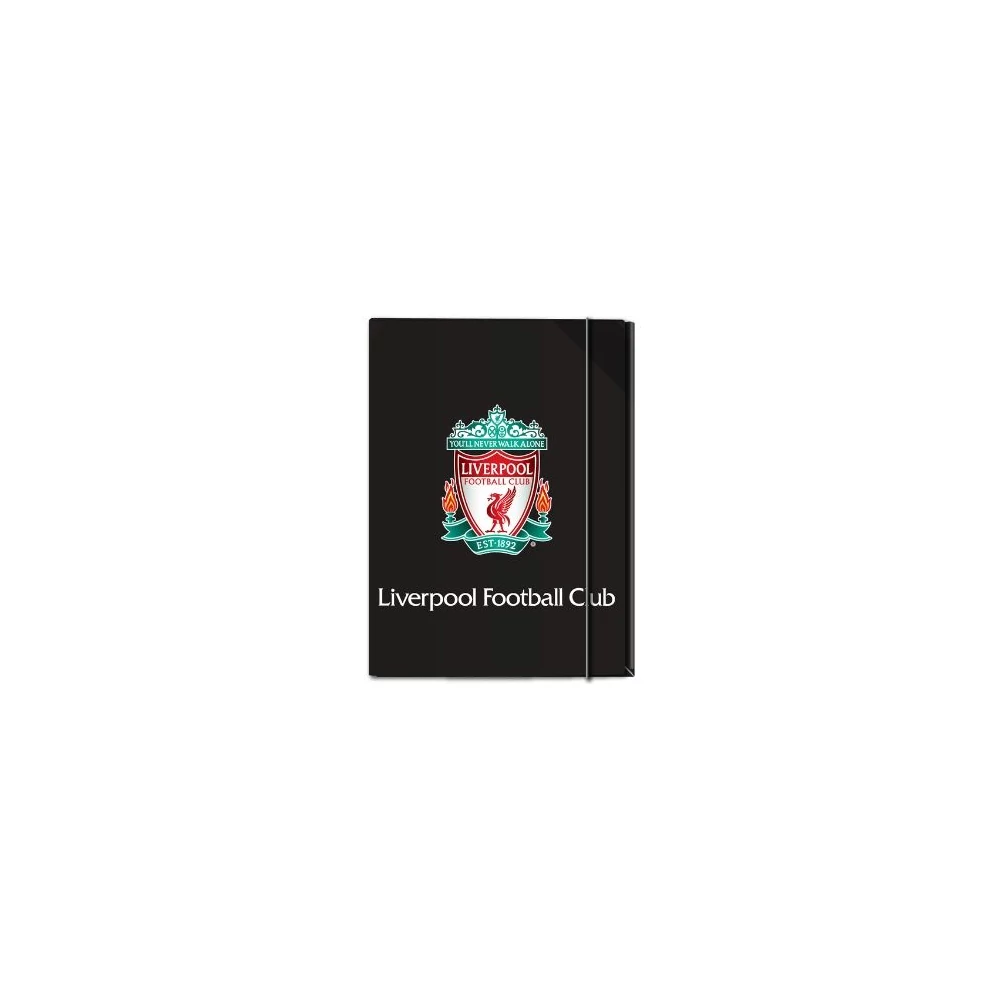 A4-es méretű, FC Liverpool címerével díszített karton gumis mappa.
