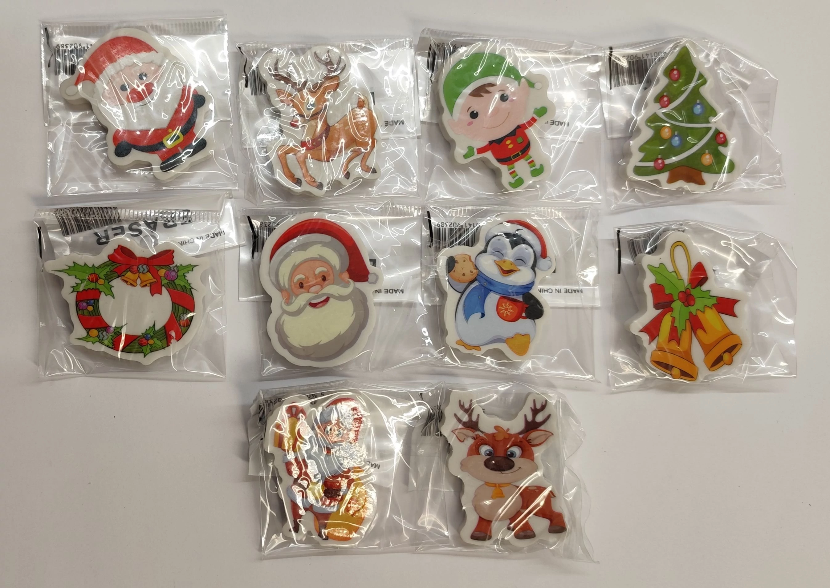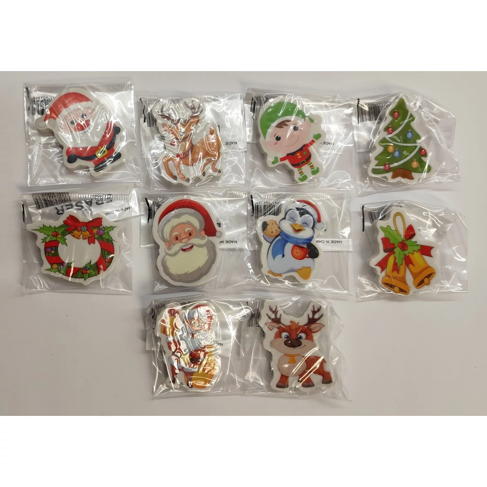 Karácsonyi mintás figurás radírok.