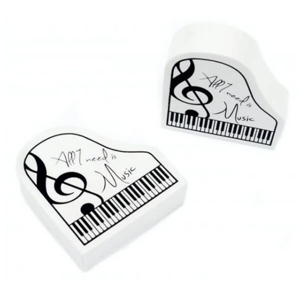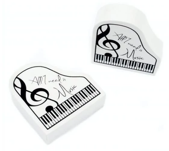 Egyszerű, de mégis különleges ez a zongora formájú radír. A fehér színű radíron violinkulcs minta és All I need is Music felirat látható. Mérete: 4,2x4 cm. Ötletes ajándékkísérő lehet zenekedvelőknek, zenészeknek, zene tanárnak, zene sulisoknak.