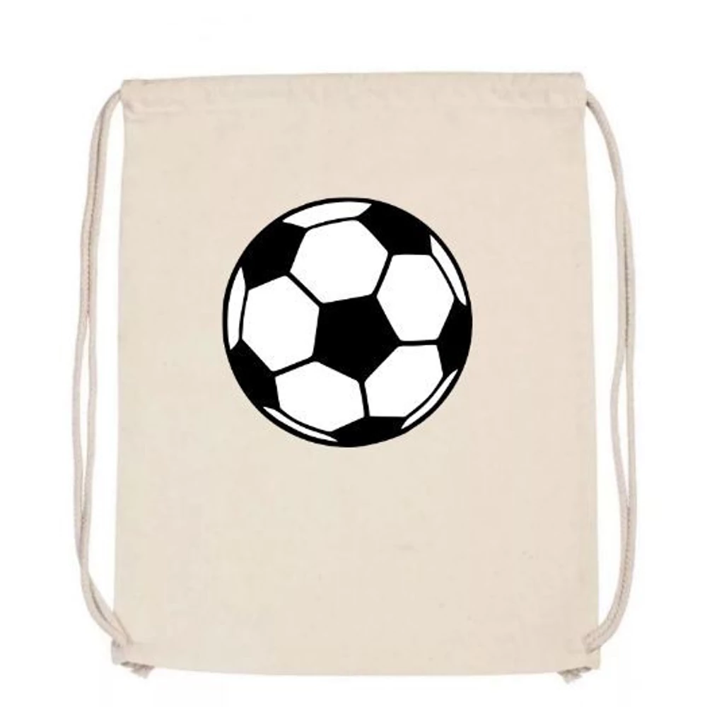 TORNAZSÁK textil egyedileg nyomtatott, 37,5 x 46 cm (natur, Focilabda)