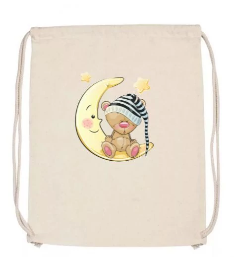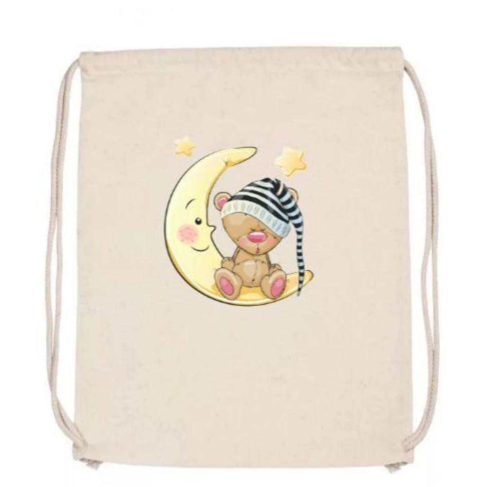 TORNAZSÁK textil egyedileg nyomtatott, 37,5 x 46 cm (natur, Maci holddal)