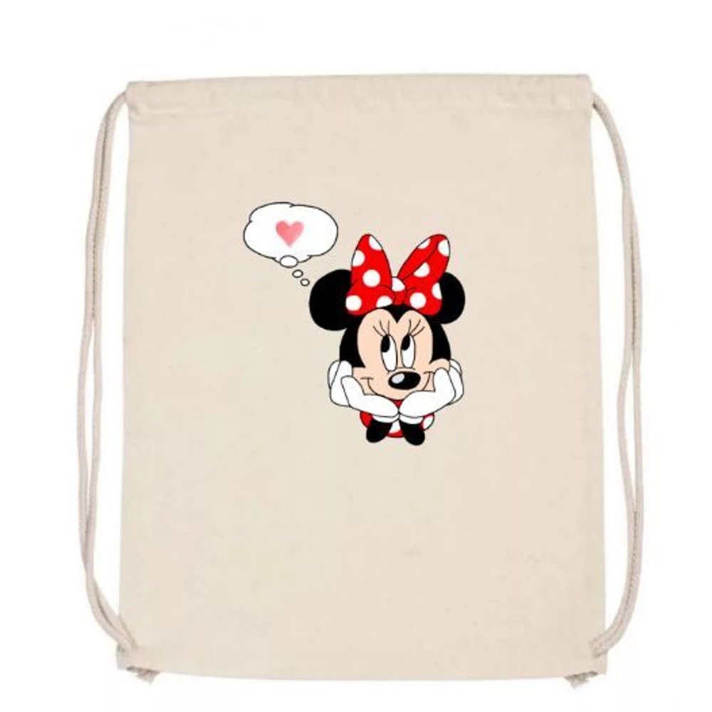 TORNAZSÁK textil egyedileg nyomtatott, 37,5 x 46 cm (natur, Minnie egér)
