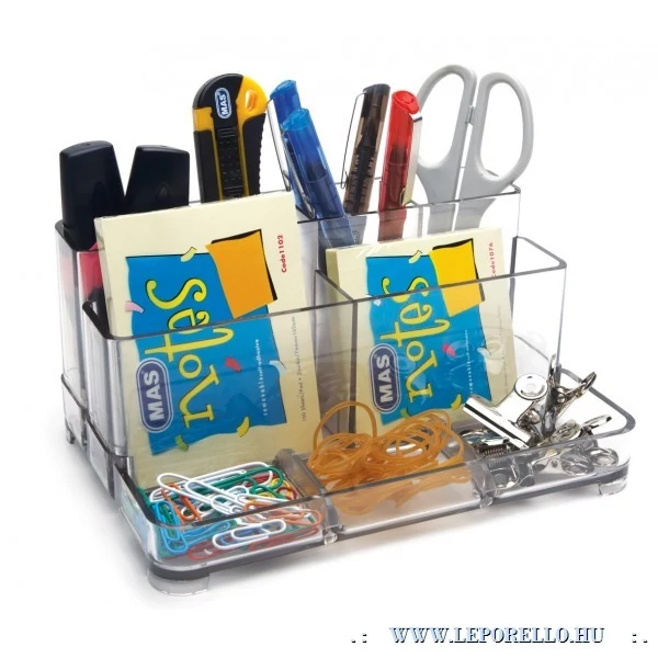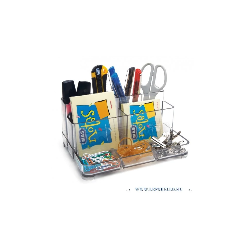SZINEK: 141090205-füst - Írószertartó asztali 9 rekeszes átlátszó kivitelben.