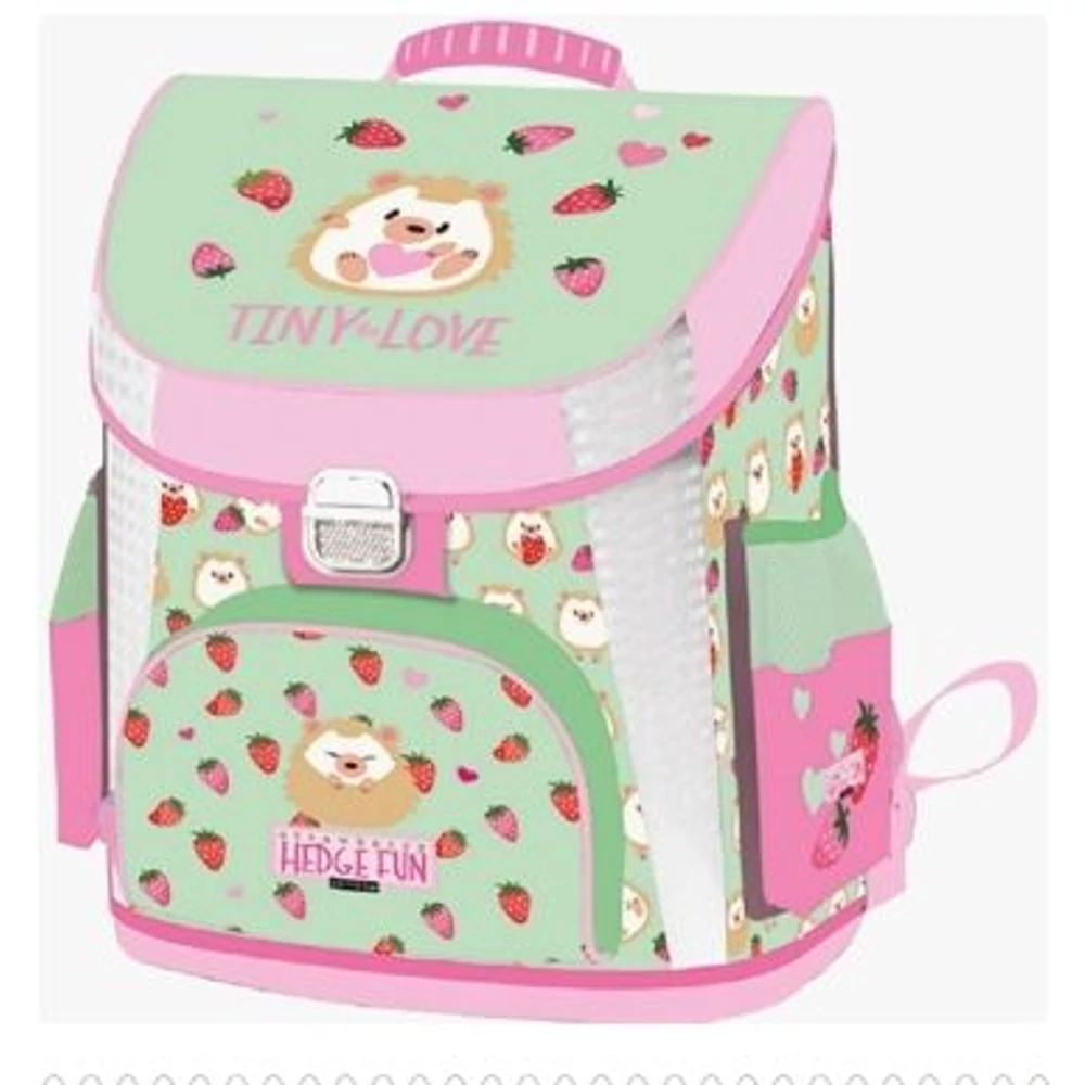 Magas minőségű, merevfalú iskolatáska 1. és 2. osztályosok részére, tartós vízlepergető anyagból. Az oldalerősítések és akemény műanyag talp növelik a tartósságot. A műanyag talp egyben növeli a stabilitást és véd a szennyeződésektől is. Könnyen tisztítható. Ergonómikusan kialakított puha, szívacsos hátrésszel rendelkezik, mely kíméli a gerincet. A táska tetején található fül segítségével a táska kézben is tartható, vagy felakasztható a pad mellé. Tágas belső tere van, elválasztókkal, műanyag zseb az órarendnek. Oldalt részben hálós zsebek találhatóak, amelyben kulacs tartható. Elől zipzáras zseb található uzsidoboznak, vagy apróságoknak. Könnyen nyílik és záródik. Elől és hátul fényvisszaverő elemek segítik a jobb láthatóságot. Mérete: 350*391*240mm. Súlya 1020 gr. + klapnis tolltartó, tornazsák