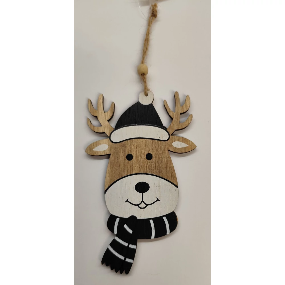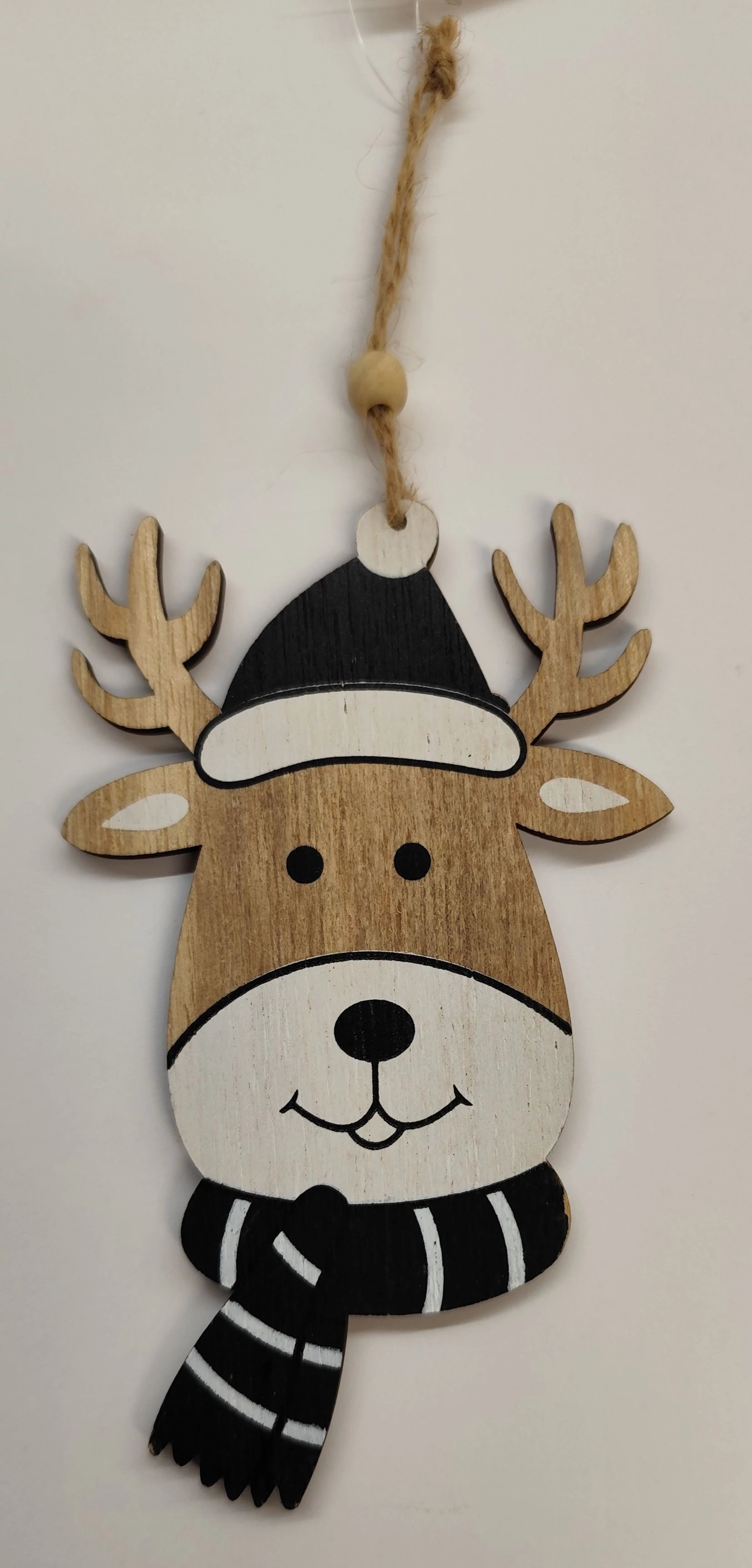 KAR. DEKOR fa, akasztható festett rénszarvas 9*15cm