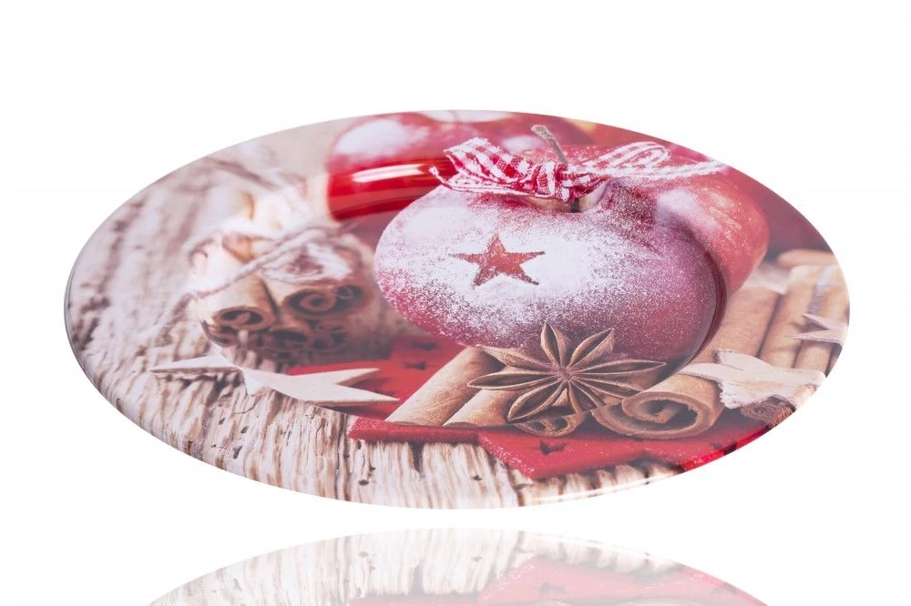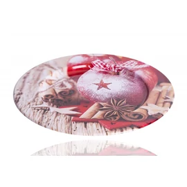 KARÁCSONYI BÁDOG TÁLCA kerek, alma, fahéj mintával 33cm