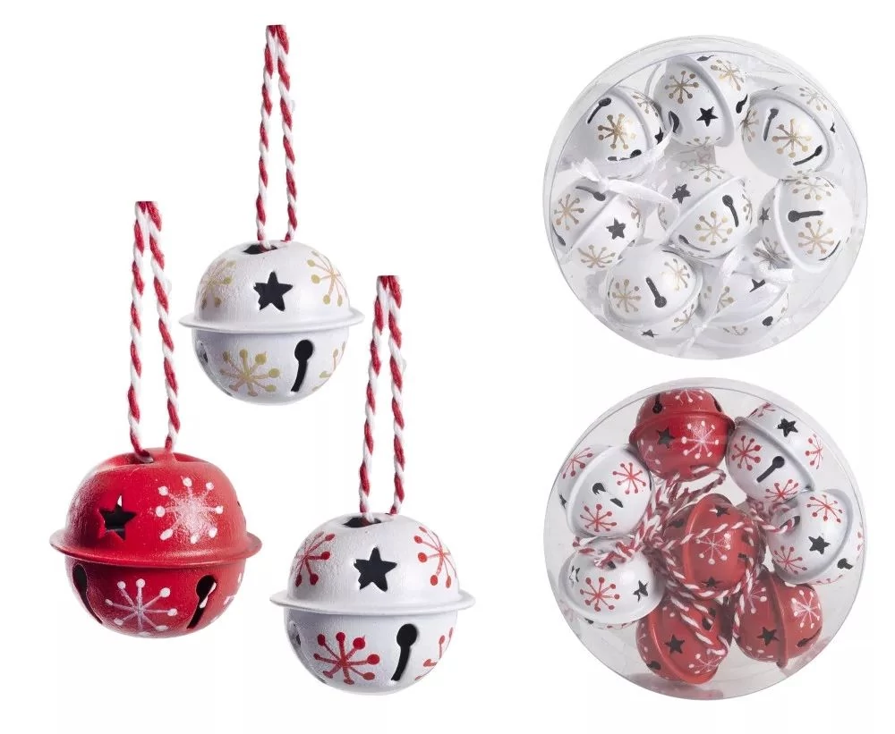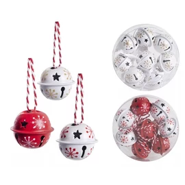 KAR.DEKOR fém csengő 3cm hópihés piros/fehér/arany