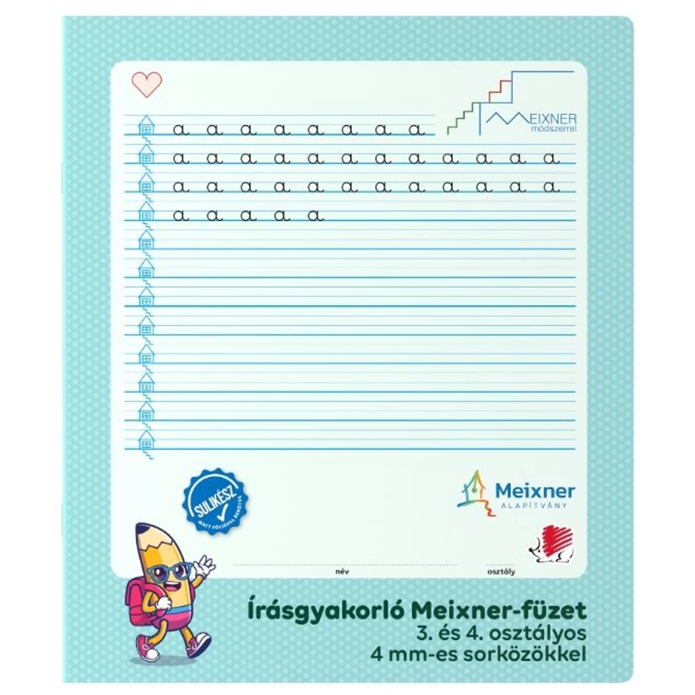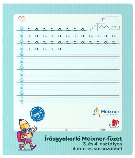 "Írás gyakorló füzet a 3. és 4. osztályosok számára, amely a Meixner Alapítvány együttműködésével és ajánlásával jött létre. Speciális vonalazású és kialakítású füzet alkalmas a Meixner-féle írás tanulás elsajátítására és gyakorlására.