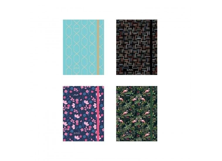 B6-os méretű herlitz Mix gumis zsebnaptár 115x165 mm-es méretben, heti beosztással, 160 oldalas, 3D lakk felületnemesítéssel, kemény táblával, jelzőszalaggal, sarokperforációval, 4 féle fedlappal. Minta a készlet erejéig választható.