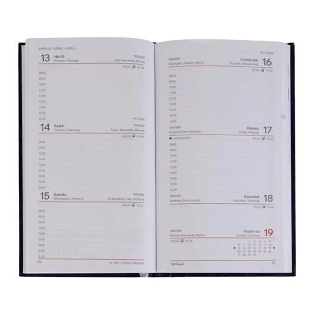 A Victoria Office "Chrono" klasszikus megjelenésű és színválasztékú, heti beosztású zsebnaptára praktikus méretének köszönhetően tökéletes választás a nélkülözhetetlen megbeszélések, időpontok feljegyzésére.