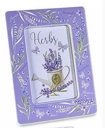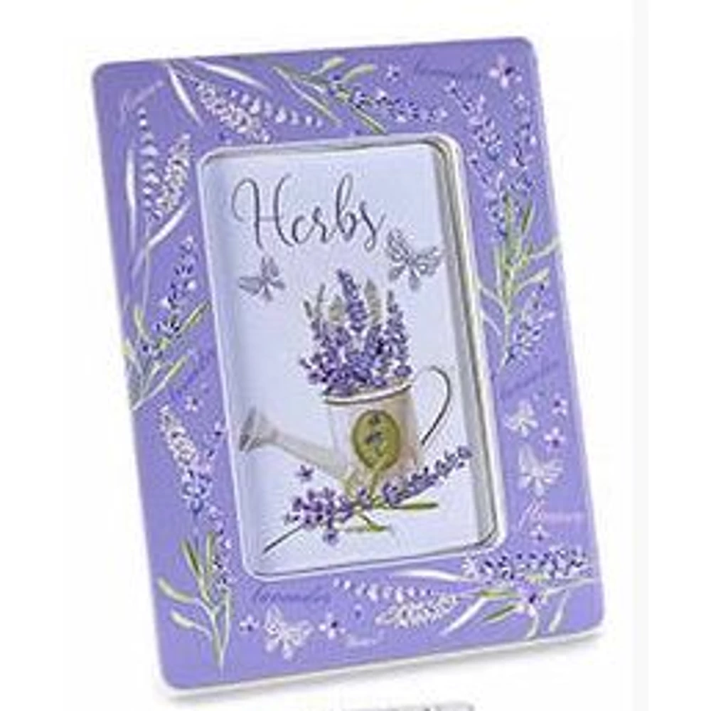 Dekoratív, levendula mintás fényképtartó kerámiából.
